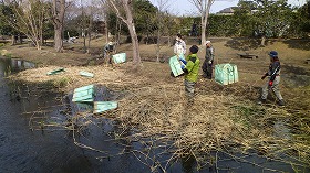 手作業では、主にヨシを刈り取りました。