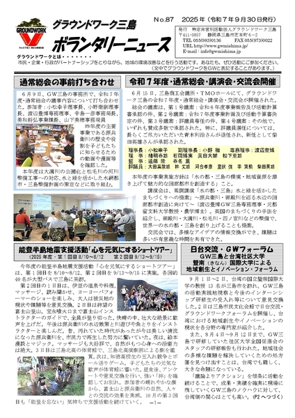 グラウンドワーク三島ボランタリーニュースの87号(2025年9月30日発行)を掲載しました。