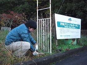 2日目は「身近な環境再生の手法を学ぶ」をテーマに、沢地グローバルガーデンの定例整備作業を体験させてもらいました。