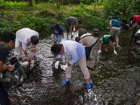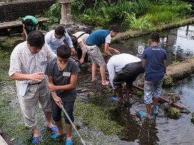 源兵衛川の水辺再生の学習・ちゃんかけ拾い・生き物観察会、三島梅花藻の里清掃活動、松毛川植林活動、三島市長訪問