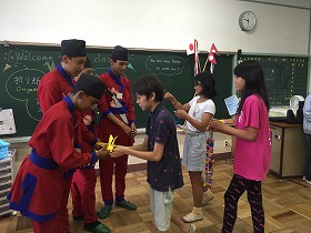 三島市立沢地小学校訪問交流、あわしまマリンパーク沼津市内訪問、シャギリ体験交流