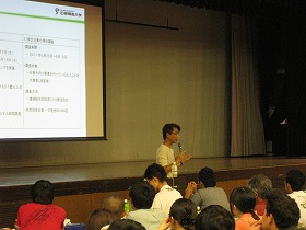 体験学習・実践地視察の後は、渡辺事務局長による、グラウンドワーク三島の活動についての講義が行われました。