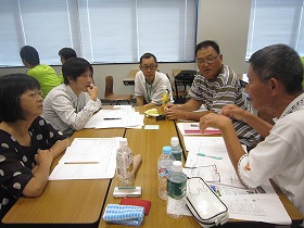 研修は、グループワーク形式で、ディスカッションと個人ワークを繰り返しながらの進行していきました。個人ワークは、その中で、様々な方の異なった視点からのご指摘を受け、自分だけでは到底思いもつかなかった角度から自分のビジネスプランを見直す事が出来ました。