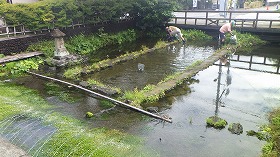 グラウンドワーク三島は、三島梅花藻を保護するために1995年、三島市南本町・佐野美術館所有の湧水池を借り、育成・増殖基地として「三島梅花藻の里」を整備しました。