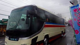 石巻へ出発する畳石観光様のバスのお見送りです。今回も、ショートツアーにご協力いただいた