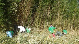 先週に続いて松毛川上流部から狩野川の堤防へ向かって、竹破砕機を用いた竹のチップ化を同時に行いながら竹林伐採を進めました。