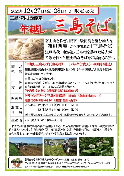 ※「年越し三島そば」は生そばにつき、直接受取り可能な方に限らせていただきます。