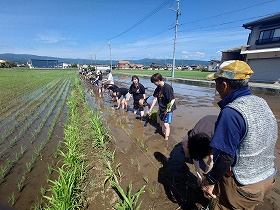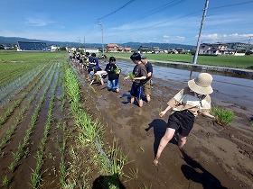 1日目は、浅間神社神池ー白滝公園ー源兵衛川ー雷井戸ー三島梅花藻の里を山口インストラクターの案内で視察、午後から梅名地区で白井元中郷用水土地改良区理事長の指導により、ゆめみしまの田植え、その後、極楽湯での温泉入浴・夕食でした。
