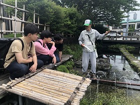 2025年6月14日(土)と15(日)、早稲田大学創造理工学研究科景観・デザイン研究室の学生5名が、グラウンドワーク三島・視察研修体験に来てくれました。1日目は、山口インストラクターの案内により、源兵衛川ー雷井戸ー三島梅花藻の里ー御殿川ー腰切不動尊ーみしま未来研究所ー桜川ー鏡池ー菰池などを回り、各所の景観デザインのコンセプトや狙いを学びました。