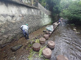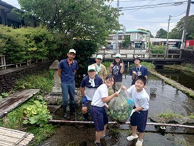 2025年8月7日(木)三島梅花藻の里の定例整備作業と源兵衛川の水の散歩道の草刈りを実施