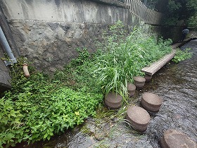 2025年8月7日(木)午前10時から、三島梅花藻の里の定例整備作業と源兵衛川の水の散歩道の草刈りを行いました。