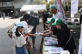 2025年8月24日(日)午前9時半から午後2時半まで、三島大社境内において「街中だがしや楽校・源兵衛川探検クイズ」を開校しました。外気温32度の猛暑の中、180人近い、親子が立ち寄っていただき、クイズに答え、えびす券をゲットしていきました。