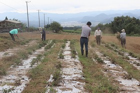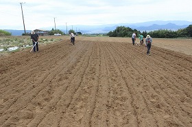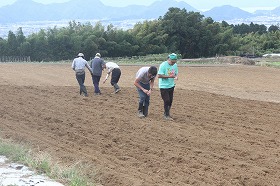 本日は、涼しげな山風が吹き、駿河湾の絶景を望みながらの作業で、参加者同士の会話も弾み、楽しい作業ができました。11月中旬には、畑が三島そばの純白のベールに覆われ、富士山の秀麗なる景色とマッチし、感動の田園景観を見ることができます。