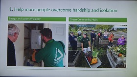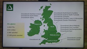 まず、英国グラウンドワーク本部を訪ね、グラハム常務理事から活動概要の説明を受けました。1981年設立後、現在、予算200億円・職員数1200人・連携の地方トラスト15・年間活動地区1300箇所・活動人数延17200人です。理念は、①パートナーシップの構築②専門的アドバイス③実践的・現場主義で、私が初めて訪ねた30年前と変わっていませんでした。