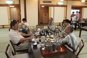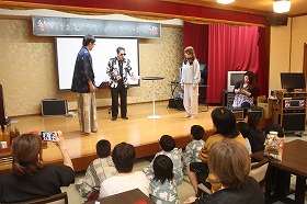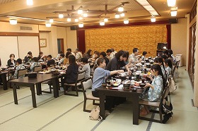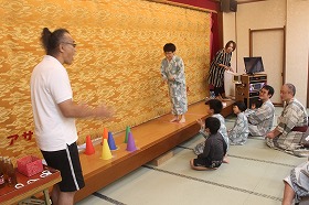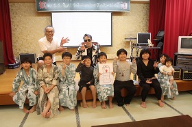 三島大社に参拝後、宿泊場所のいづみ荘に着き、待望の温泉三昧、豪華な夕食、マッサージ体験、輪投げ大会、マジシャン・EISHINさんによる驚きのマジック、大人たちは夜の交流会担当の私とともに、本音の被災地の現実・課題などの情報交換会と続きました。