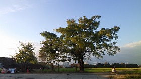 現在、堤防の嵩上げ工事によりムクノキの巨木が2本伐採されてしまいました。ここの整備計画では、センダンの巨木を伐採・排除し、アスファルト舗装を施し、周辺にフェンスを設置することになっています。国に対しては、鳥やトンボ、生態系の専門家の意見書を添えて、この場所を緑陰公園として活用して、大切なセンダンの巨木を保護してほしいと申し入れてあります。