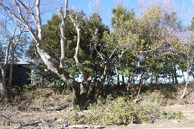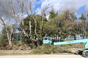 この剪定作業により、2月から始まる本格的な築堤工事への影響が無くなり、計画通りの河川断面を確保することができます。