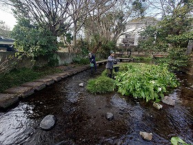 2026年2月14日(土)午後3時から、宮さんの川・ほたるの里竹垣整備後、グラウンドワーク三島サポーターとともに、源兵衛川上流部・水の散歩道周辺にカワニナを放流しました。