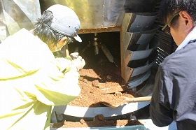 2026年4月3日(金)午後1時から、加和太建設さんのマンション建設現場に仮設置してある「バイオトイレ」の移設・準備を行いました。分解槽に入っている杉チップを排出し、乾燥させ、空気に触れさせて、バクテリアの活性化を促し、ゴミや固形物を取り除きました。