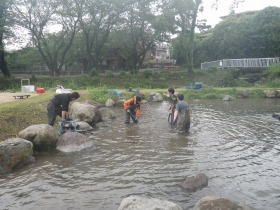 5/22境川・清住緑地で3回目の湧水池清掃作業