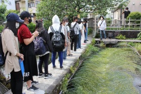 令和3年6月11日(金)午後2時から、滋賀県彦根市立南中学校の3年生59名が「修学旅行」の一環として三島市を訪れ、私の環境講話やインストラクターの案内による源兵衛川や三島梅花藻の里の体験学習が行われました。