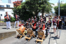 腰切不動尊・大祭が賑やかに開催されました。今回は、レッツシャギリの皆様が演奏に来てくれて、夏祭りの華やかな雰囲気を楽しめました。