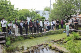 2022年6月4日(土)と5日(日)、芝浦工業大学システム理工学部環境シスム学科と付属柏高校の学生ら18人が環境フィールド体験・三島研修として、松毛川での植林地の下草刈りや三島梅花藻の里の整備作業、源兵衛川でのホタル鑑賞、市内各所の実践地の視察を行いました。