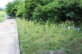 このように人の手が入り、地道な維持管理の仕組みが継続されることにより、次の森が育成されていきます。しかし、3年ほど続ければ、雑草に苗木が勝ち、自然力・潜在力で森が創られていきます。その「礎・基盤」を今、我慢強くサポートしています。