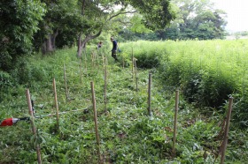 令和4年6月10日(金)午前10時から松毛川の御園地区に植えた苗木と三島桜周囲に繁茂した下草刈り作業を行いました。植えただけなら雑草に覆われて光も風も当たらず枯れていきます。