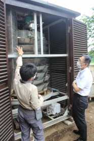 令和4年7月12日(火)、山梨県北杜市にある工場に置いてあるネパール行きと実証実験用のバイオトイレの確認に行ってきました。より機能性・効率性の高い、機器に改良・改善するための工夫やアイデア出しを連携企業関係者と意見交換しました。
