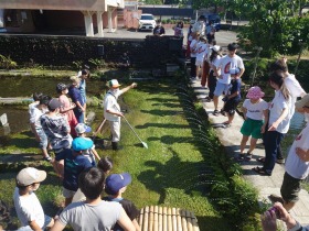 令和4年7月17日(日)、猛暑の中、東京都杉並区の小学生と明治大学・早稲田大学などの大学生総勢30名が「みしまエコツーリズム」として、三島を訪問してくれました。