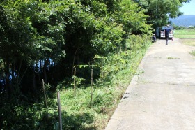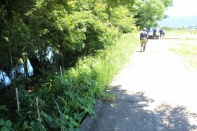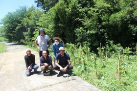 令和4年7月30日(土)、外気温34度、猛烈な暑さの中で作業しました。2時間、皆様と頑張り、沼津市大平地区側と三島市御園地区側に植えた苗木の周辺を覆う雑草を刈り取りました。