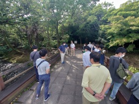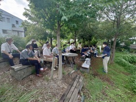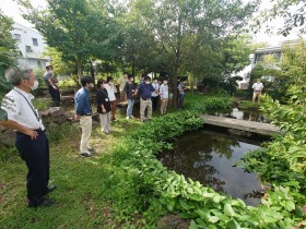 令和4年9月9日の午後から、グラウンドワーク三島への視察者のご案内をさせていただきました。農学部農業農村工学系3年生17名に世界かんがい施設遺産と世界水遺産に登録された源兵衛川の水辺再生物語やグラウンドワーク活動のノウハウである「ボトムアップ・パートナーシップ・ネットワーク・ホリステックアプローチ」などについて説明しました。