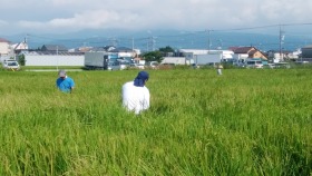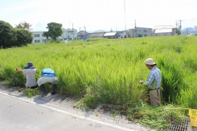 参加者で鎌を持ち、足場の悪い田んぼに入り、この雑草を1本づつ切り取りました。膨大な作業で明日以降も作業を続けます。今後、雑草の実が周辺に飛んでしまうので、最悪の場所は草刈り機で部分的にすべてを刈取り、除去しなくてはならないと覚悟しています。本当に残念で悔しい作業になります。