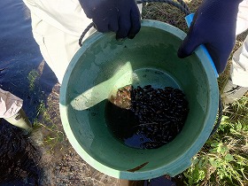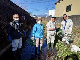 あわせ、中郷地域を流れる長伏掘りにて、ホタルの餌であるカワニナの引越し作業を加和太建設の職員さんの支援を受けて行いました。この後、源兵衛川に放流しましたが、来年もまたカワニナを補給していければと考えています。本当に人の手が加わると見違えるように綺麗になりますね。満足・満足です。