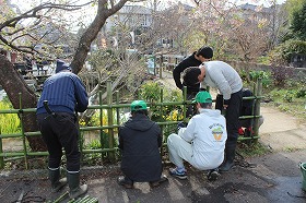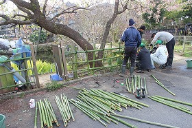 明日も引き続き、池側の竹垣の設置作業を実施しますので、皆様の参加をお待ちしております。街は市民の公共財です。市民の力で心地よい公共空間に整備していきましょう。