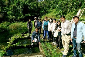 本日・令和元年10月19日、富士山湧水調査を都留文大生とインストラクターの皆様とともに実施してきました。今回は、山梨県都留市内の湧水池の水質や成分などをパックテストを使用して調べました。この成果はグラウンドワーク三島ホームページ「富士山湧水マップ」に最新情報として掲載します。