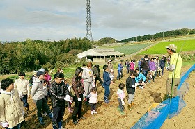 今回は70名以上もの親子が参加してくれて、子どもたちの喚声を聞きながらの楽しい農作業ができました。土の臭い、爽やかな山風、駿河湾の壮大な景色を見ながらの作業は気分爽快な気持ちになり、気分転換ができました。