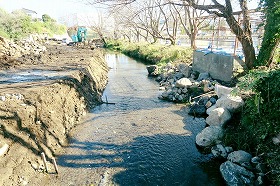 冬の寒々とした風景ですが、やはり竹を伐採・整備した現場は美しいですね。境川の自然型の川づくりも着実に整備が進み、以前の荒れた川とは見違えた整然とした生物多様性が担保された川が造り上げられてきています。