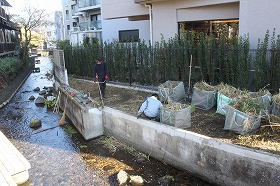 2025年11月26日(水)源兵衛川上流部・蓮馨寺対岸の草刈りと花壇づくりを実施