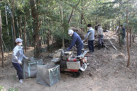 2025年12月8日(月)~9日(火)大場里山「地域の守り神様」石祠を守れ!石祠周辺の竹のチップ化作業を実施