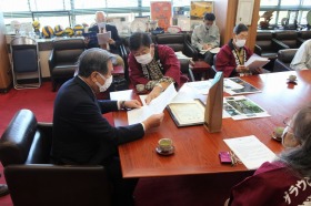豊岡市長からは「源兵衛川や三島梅花藻の保全活動を含め、今の三島の価値と魅力の基盤を創られ、地道に維持管理されていることに敬意を表します」とお褒めの言葉をいただきました。新たな応援団の皆様にも同席していただき、和気藹々の楽しい意見交換ができました。さらに「三島磨き」に努力していきます。