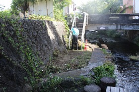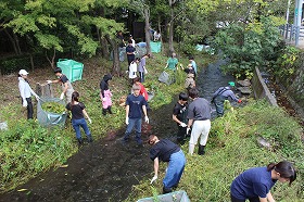2023年9月24日(日)午前10時から、青山学院大学「SHANTI SHANTI」の皆さんが、源兵衛川の草刈り作業に参加してくれました。今年はホタルが3,700匹も乱舞した水の苑緑地周辺も雑草が繁茂して、生息環境の悪化が進行していました。