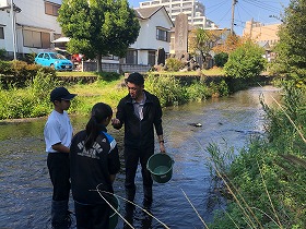 2023年10月26日(木)と27日(金)の2日間、三島市立北中学校2年生の2人がグラウンドワーク三島にインターンシップに来てくれました。三島梅花藻の里と雷井戸の清掃作業、源兵衛川や市内湧水地の視察、ゆめみしま収穫祭の手伝い、源兵衛川でのカワニナ捕獲、松毛川での植林地の下草刈り、境川清住緑地の見学、最後に私からの本会の社会的役割・三島のまちづくりの先進性などについて説明させていただきました。